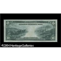 Fr. 942 $10 1914 Federal Reserve Note Choice New. T <B>Fr. 942 $10 1914 Federal Reserve Note Choice New.</B></I> This is a really nice example of a note that's quite scarce in all grades, with only about 25 examples known. <BR><BR><B>Important notice:</B> Heritage usually auctions material at the rate of 200-250 lots per hour. On some occasions eBay Live bid software or the Internet may not be able to keep up with the pace of the auction. We recommend placing a realistic absentee bid now as insurance to avoid disappointment. Occasionally the auctioneer may eliminate or reject an eBay Live bid, and the auctioneer may also reopen a lot after the close of the eBay live bidding (usually because we missed an audience bid), and may reject your bid even if it shows you as the winning bidder. By bidding via eBay Live, you agree that Heritage may award the lot to another bidder at its sole discretion under the circumstances described above or any other reasonable circumstances. Since eBay bids are not shown to us until we open the lot on the floor, we treat those bids just like floor bids. In most cases the floor responds before the eBay bid is presented to us, due to Internet lag time, so for consistency we have made it a policy that floor bids are always considered first over tie eBay live bids. Also please note that all Heritage lots purchased through eBay Live carry a 20% Buyer's Premium. Please make sure you read the Terms and Conditions before you bid. This lot is being auctioned in conjunction with a live floor auction by Heritage Galleries & Auctioneers. All final auction and invoice information will be supplied by Heritage Galleries & Auctioneers, and all other information should be considered preliminary. Lot:17723