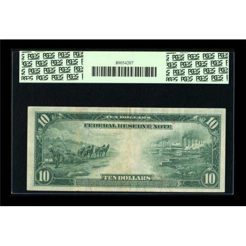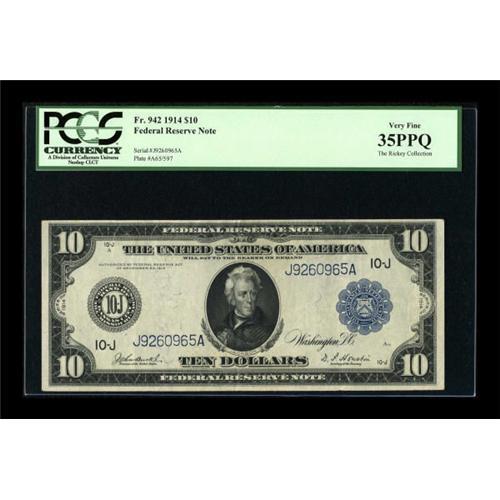 <B>Fr. 942 $10 1914 Federal Reserve Note PCGS Very Fine 35PPQ.</B></I> This is a moderately circulated Kansas City Fed with bright paper and broad margins. Some embossing remains visible.<BR><BR><b>Shipping:</b> Coins & Currency (<a target="_blank" href="http://www.heritageauctions.com/common/shipping.php">view shipping information</a>)