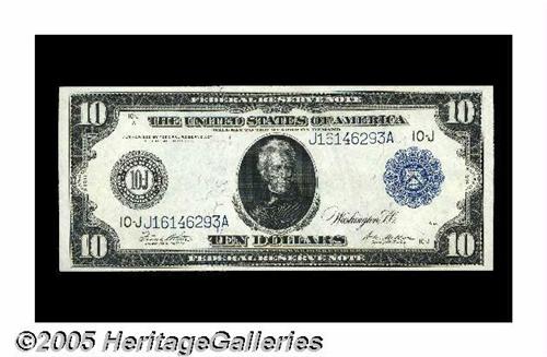 <B>Fr. 943a $10 1914 Federal Reserve Note Choice About New.</B></I> A light center fold graces this KC $10.