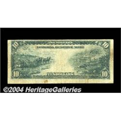 Fr. 946 $10 1914 Federal Reserve Note Fine. A tough note, with a total census of around fifteen. This is the seventh that CAA has sold. It's well circulated but problem free. <BR><BR><B>Important notice:</B> Heritage usually auctions material at the rate of 200-250 lots per hour. On some occasions eBay Live bid software or the Internet may not be able to keep up with the pace of the auction. We recommend placing a realistic absentee bid now as insurance to avoid disappointment. Occasionally the auctioneer may eliminate or reject an eBay Live bid, and the auctioneer may also reopen a lot after the close of the eBay live bidding (usually because we missed an audience bid), and may reject your bid even if it shows you as the winning bidder. By bidding via eBay Live, you agree that Heritage may award the lot to another bidder at its sole discretion under the circumstances described above or any other reasonable circumstances. Since eBay bids are not shown to us until we open the lot on the floor, we treat those bids just like floor bids. In most cases the floor responds before the eBay bid is presented to us, due to Internet lag time, so for consistency we have made it a policy that floor bids are always considered first over tie eBay live bids. Also please note that all Heritage lots purchased through eBay Live carry a 20% Buyer's Premium. Please make sure you read the Terms and Conditions before you bid. <BR><BR><B>IMPORTANT ANNOUNCEMENT ABOUT RESERVES:</B> Heritage now divulges all reserves on its web site 7 days before every auction. If you want to know whether the reserve on this lot has been met, and if not, what the reserve amount is, please visit this lot page on the HeritageCoin.com web site, or email: bid@HeritageGalleries.com