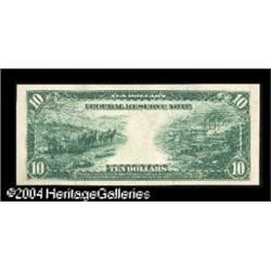 Fr. 947 $10 1914 Federal Reserve Note Gem New. Only abo <B>Fr. 947 $10 1914 Federal Reserve Note Gem New.</B></I> Only about 20 examples of this number are known, and very few could possibly be as nice as this broadly margined, originally embossed example. <BR><BR><B>Important notice:</B> Heritage usually auctions material at the rate of 200-250 lots per hour. On some occasions eBay Live bid software or the Internet may not be able to keep up with the pace of the auction. We recommend placing a realistic absentee bid now as insurance to avoid disappointment. Occasionally the auctioneer may eliminate or reject an eBay Live bid, and the auctioneer may also reopen a lot after the close of the eBay live bidding (usually because we missed an audience bid), and may reject your bid even if it shows you as the winning bidder. By bidding via eBay Live, you agree that Heritage may award the lot to another bidder at its sole discretion under the circumstances described above or any other reasonable circumstances. Since eBay bids are not shown to us until we open the lot on the floor, we treat those bids just like floor bids. In most cases the floor responds before the eBay bid is presented to us, due to Internet lag time, so for consistency we have made it a policy that floor bids are always considered first over tie eBay live bids. Also please note that all Heritage lots purchased through eBay Live carry a 20% Buyer's Premium. Please make sure you read the Terms and Conditions before you bid. This lot is being auctioned in conjunction with a live floor auction by Heritage Galleries & Auctioneers. All final auction and invoice information will be supplied by Heritage Galleries & Auctioneers, and all other information should be considered preliminary. Lot:17725