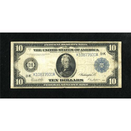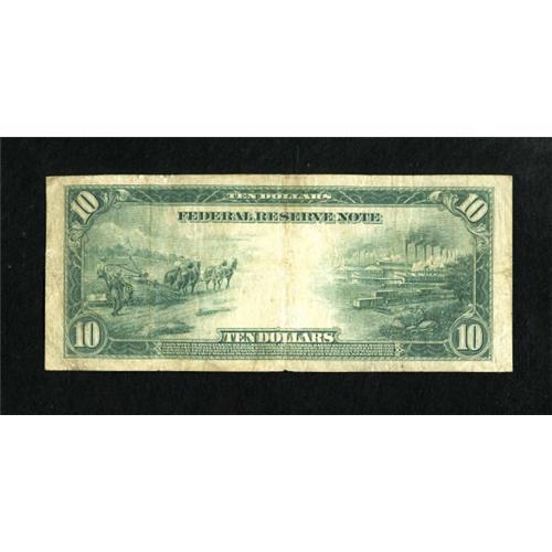 <B>Fr. 947 $10 1914 Federal Reserve Note Fine.</B></I> The paper still snaps on this Dallas $10 that exhibits some edge wear. Only around 20 serial numbers have been enumerated for this Friedberg number.<BR><BR><b>Shipping:</b> Coins & Currency (<a target="_blank" href="http://www.heritageauctions.com/common/shipping.php">view shipping information</a>)