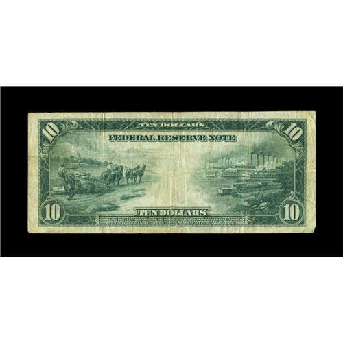 <B>Fr. 950 $10 1914 Federal Reserve Note Fine.</B></I> A pleasingly bright piece with a few pinholes that are invisible except when held to a light source.