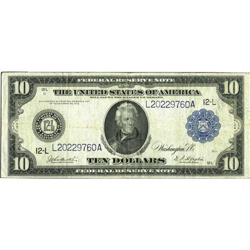 <B>Fr. 950 $10 1914 Federal Reserve Note Very Fine.</B></I> A tad over twenty notes make up the total population on this San Francisco Sawbuck.