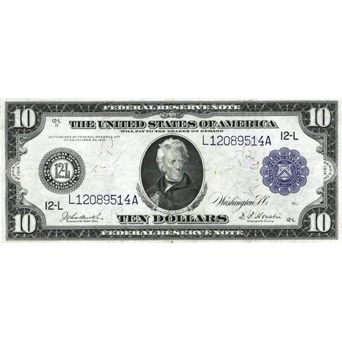 <B>Fr. 950 $10 1914 Federal Reserve Note Very Fine-Extremely Fine.</B></I> This Ten is lightly handled with nice color and sound edges.