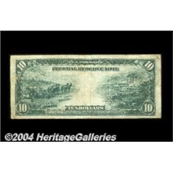 Fr. 950 $10 1914 Federal Reserve Note Fine-Very Fine. Only the fifth example we've sold of this rare Burke-Houston San Francisco Ten. The total census stands at under a dozen. <BR><BR><B>Important notice:</B> Heritage usually auctions material at the rate of 200-250 lots per hour. On some occasions eBay Live bid software or the Internet may not be able to keep up with the pace of the auction. We recommend placing a realistic absentee bid now as insurance to avoid disappointment. Occasionally the auctioneer may eliminate or reject an eBay Live bid, and the auctioneer may also reopen a lot after the close of the eBay live bidding (usually because we missed an audience bid), and may reject your bid even if it shows you as the winning bidder. By bidding via eBay Live, you agree that Heritage may award the lot to another bidder at its sole discretion under the circumstances described above or any other reasonable circumstances. Since eBay bids are not shown to us until we open the lot on the floor, we treat those bids just like floor bids. In most cases the floor responds before the eBay bid is presented to us, due to Internet lag time, so for consistency we have made it a policy that floor bids are always considered first over tie eBay live bids. Also please note that all Heritage lots purchased through eBay Live carry a 20% Buyer's Premium. Please make sure you read the Terms and Conditions before you bid. <BR><BR><B>IMPORTANT ANNOUNCEMENT ABOUT RESERVES:</B> Heritage now divulges all reserves on its web site 7 days before every auction. If you want to know whether the reserve on this lot has been met, and if not, what the reserve amount is, please visit this lot page on the HeritageCoin.com web site, or email: bid@HeritageGalleries.com