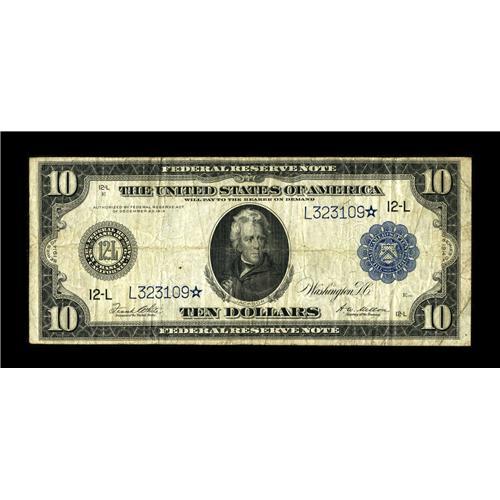 <B>Fr. 951a $10 1914 Federal Reserve Star Note Fine.</B></I> Over seven years have passed since a note of this type has hit the auction block. This is currently the highest serial number known and has been in our consignor's possession since June of 1990. Bright overprints grace solid surfaces for the grade.<BR><I>Ex: Doug Murray</B></I><BR><BR><b>Shipping:</b> Coin/Currency (<a target="_blank" href="http://www.heritageauctions.com/common/shipping.php">view shipping information</a>)