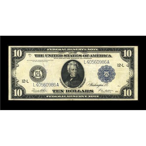 <B>Fr. 951c $10 1914 Federal Reserve Note Very Fine.</B></I> Traces of embossing remain on this San Fran $10.