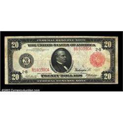 Fr. 953a $20 1914 Red Seal Federal Reserve Note Very Fine. Unfortunately, the red seal is not as strong as we would like to see, which is a shame because this is otherwise a rather nice note. Important notice: We expect to be auctioning lots at the rate of 200-250 per hour. Sometimes eBay Premier live bid software cannot keep up with that pace, so we strongly recommend that you place a realistic proxy bid now as insurance to avoid disappointment. Also please note that all Heritage/CAA lots purchased through eBay Premier carry a 20% Buyer's Premium. Please make sure you read the Terms and Conditions.