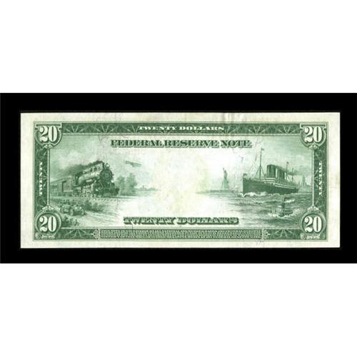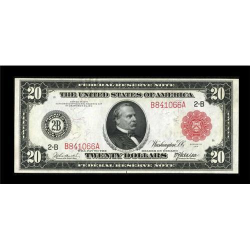 <B>Fr. 953a $20 1914 Red Seal Federal Reserve Note Extremely Fine.</B></I> Three light bends do little to distract from the Gem eye appeal and deeply colored overprint.<B><BR></B></I><I>From The Drew Keough Collection</B></I><BR><BR><b>Shipping:</b> Coins & Currency (<a target="_blank" href="http://www.heritageauctions.com/common/shipping.php">view shipping information</a>)