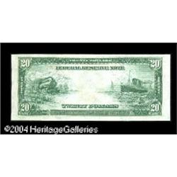 Fr. 953b $20 1914 Red Seal Federal Reserve Note Super <B>Fr. 953b $20 1914 Red Seal Federal Reserve Note Superb Gem New.</B></I> An absolutely magnificent Red Seal Twenty with pronounced deep, original embossing, huge margins, perfect colors and magnetic eye appeal. In all our years of cataloging top-quality currency, we've seen less than a half-dozen Red Seal Twenty Feds the equal of this incredible piece. Truly rare in this grade.<BR><I>From the collection of Malcolm A. Trask.</B></I> <BR><BR><B>Important notice:</B> Heritage usually auctions material at the rate of 200-250 lots per hour. On some occasions eBay Live bid software or the Internet may not be able to keep up with the pace of the auction. We recommend placing a realistic absentee bid now as insurance to avoid disappointment. Occasionally the auctioneer may eliminate or reject an eBay Live bid, and the auctioneer may also reopen a lot after the close of the eBay live bidding (usually because we missed an audience bid), and may reject your bid even if it shows you as the winning bidder. By bidding via eBay Live, you agree that Heritage may award the lot to another bidder at its sole discretion under the circumstances described above or any other reasonable circumstances. Since eBay bids are not shown to us until we open the lot on the floor, we treat those bids just like floor bids. In most cases the floor responds before the eBay bid is presented to us, due to Internet lag time, so for consistency we have made it a policy that floor bids are always considered first over tie eBay live bids. Also please note that all Heritage lots purchased through eBay Live carry a 20% Buyer's Premium. Please make sure you read the Terms and Conditions before you bid. This lot is being auctioned in conjunction with a live floor auction by Heritage Galleries & Auctioneers. All final auction and invoice information will be supplied by Heritage Galleries & Auctioneers, and all other information should be considered preliminary. Lot:17729