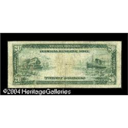 Fr. 954a $20 1914 Red Seal Federal Reserve Note Fine. A <B>Fr. 954a $20 1914 Red Seal Federal Reserve Note Fine.</B></I> All Philadelphia Red Seal Twenties are scarce, with only a few more than 20 pieces known, evenly divided between the "a" and "b" types. This "a" note, though well circulated, is problem free save for four pinholes. <BR><BR><B>Important notice:</B> Heritage usually auctions material at the rate of 200-250 lots per hour. On some occasions eBay Live bid software or the Internet may not be able to keep up with the pace of the auction. We recommend placing a realistic absentee bid now as insurance to avoid disappointment. Occasionally the auctioneer may eliminate or reject an eBay Live bid, and the auctioneer may also reopen a lot after the close of the eBay live bidding (usually because we missed an audience bid), and may reject your bid even if it shows you as the winning bidder. By bidding via eBay Live, you agree that Heritage may award the lot to another bidder at its sole discretion under the circumstances described above or any other reasonable circumstances. Since eBay bids are not shown to us until we open the lot on the floor, we treat those bids just like floor bids. In most cases the floor responds before the eBay bid is presented to us, due to Internet lag time, so for consistency we have made it a policy that floor bids are always considered first over tie eBay live bids. Also please note that all Heritage lots purchased through eBay Live carry a 20% Buyer's Premium. Please make sure you read the Terms and Conditions before you bid. This lot is being auctioned in conjunction with a live floor auction by Heritage Galleries & Auctioneers. All final auction and invoice information will be supplied by Heritage Galleries & Auctioneers, and all other information should be considered preliminary. Lot:17730