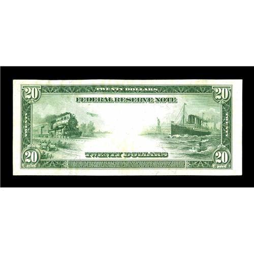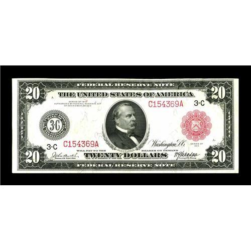 <B>Fr. 954a $20 1914 Red Seal Federal Reserve Note Very Fine-Extremely Fine.</B></I> This $20 Red Seal was part of the Jim Thompson Collection. Only 13 serial numbers have been recorded for this Friedberg number. Its handling is concentrated in the center of the note and it gives the impression of a higher grade at first glance.<BR><I>From The Bill and Kathy Stella Currency Collection</B></I><BR><BR><b>Shipping:</b> Coin/Currency (<a target="_blank" href="http://www.heritageauctions.com/common/shipping.php">view shipping information</a>)