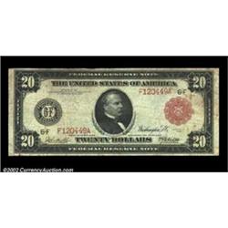 Fr. 957a $20 1914 Red Seal Federal Reserve Note Fine. This is one of the rarest Red Seal Twenties. A