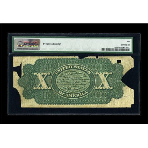 <B>Fr. 95b $10 1863 Legal Tender PMG Fair 2 Net.</B></I> This is without question one of the worst examples extant of this issue, but still graded. Numerous missing pieces are noticed. This lot will be offered with no estimate. <I>No returns will be accepted on this lot for any reason</B></I>.<BR><BR><b>Shipping:</b> Coins & Currency (<a target="_blank" href="http://www.heritageauctions.com/common/shipping.php">view shipping information</a>)