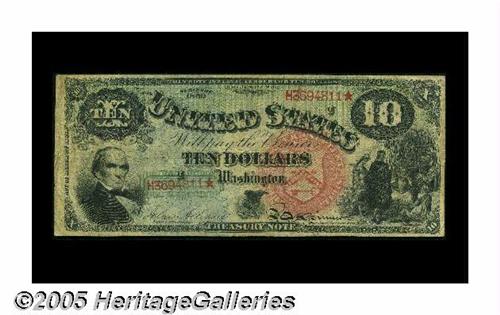 <B>Fr. 96 $10 1869 Legal Tender Fine.</B></I> A couple of minor edge tears and minute pinholes are noted for accuracy on this mid-grade Rainbow..