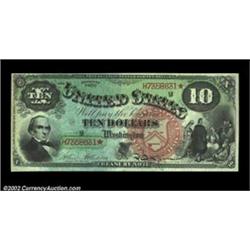 Fr. 96 $10 1869 Legal Tender Gem New. The colors on this Rainbow Ten are spectacular, with the paper fully bright and the inks extremely bold. Even the blue security tint is bolder than normally seen. The face centering is less than perfect, but the margins are broad enough at all points to easily support the Gem grade. The overly large back design is perfectly centered, with generous margins all around. Important notice: We expect to be auctioning lots at the rate of 200-250 per hour. Sometimes eBay Premier live bid software cannot keep up with that pace, so we strongly recommend that you place a realistic proxy bid now as insurance to avoid disappointment. Also please note that all Heritage/CAA lots purchased through eBay Premier carry a 20% Buyer's Premium. Please make sure you read the Terms and Conditions.