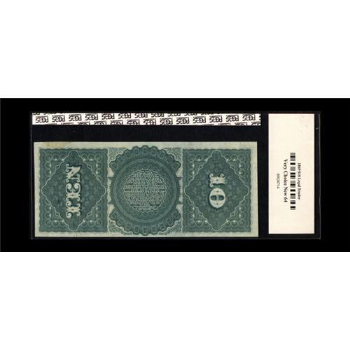 48B. CURRENCY – Notes sold referencing a third-party grading service are sold "as is" without any express or implied warranty, except for a guarantee by Auctioneer that they are genuine. Grading, condition or other attributes of any lot may have a material effect on its value, and the opinion of others, including independent grading services such as PCGS Currency, PMG, and CGA may differ with that of Auctioneer. Auctioneer shall not be bound by any prior or subsequent opinion, determination, or certification by any independent grading service. The grades assigned by any grading service to any note offered in any Heritage Currency Auctions of America sale represent the opinion of that grading service only,and may differ in material respects from the grade assigned to the same note in previous sales by HCAA or other auction companies, or from the grade that would be assigned by any other grading service. HCAA is unable to view any third party graded item outside of the holder, and specifically disclaims any liability of any kind to bidders who bid on third party graded items for mistakes of commission or omission by any grading service. Bidders are hereby notified that currency grading standards have changed in the past and are subject to change in the future, and that the only remedy bidder has with respect to third party graded notes is to deal directly with the grading service certifying the item. Bidders are also advised that Auctioneer makes no representation or guarantee that any item obtained by Bidder will be assigned any particular grade by any particular grading service, and as noted herein, Bidder specifically waives any claim to right of return of any item because of the opinion, determination, or certification, or lack thereof, by any independent grading service. Certain warranties may be available from the grading services and the Bidder is referred to them for further details: Paper Money Guaranty (PMG), PO Box 4711, Sarasota FL 34230; PCGS Currency, PO Box 9458, Newport Beach, CA 92658; Currency Grading & Authentication (CGA), PO Box 418, Three Bridges, NJ 08887.