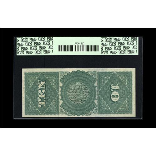 48B. CURRENCY – Notes sold referencing a third-party grading service are sold "as is" without any express or implied warranty, except for a guarantee by Auctioneer that they are genuine. Grading, condition or other attributes of any lot may have a material effect on its value, and the opinion of others, including independent grading services such as PCGS Currency, PMG, and CGA may differ with that of Auctioneer. Auctioneer shall not be bound by any prior or subsequent opinion, determination, or certification by any independent grading service. The grades assigned by any grading service to any note offered in any Heritage Currency Auctions of America sale represent the opinion of that grading service only,and may differ in material respects from the grade assigned to the same note in previous sales by HCAA or other auction companies, or from the grade that would be assigned by any other grading service. HCAA is unable to view any third party graded item outside of the holder, and specifically disclaims any liability of any kind to bidders who bid on third party graded items for mistakes of commission or omission by any grading service. Bidders are hereby notified that currency grading standards have changed in the past and are subject to change in the future, and that the only remedy bidder has with respect to third party graded notes is to deal directly with the grading service certifying the item. Bidders are also advised that Auctioneer makes no representation or guarantee that any item obtained by Bidder will be assigned any particular grade by any particular grading service, and as noted herein, Bidder specifically waives any claim to right of return of any item because of the opinion, determination, or certification, or lack thereof, by any independent grading service. Certain warranties may be available from the grading services and the Bidder is referred to them for further details: Paper Money Guaranty (PMG), PO Box 4711, Sarasota FL 34230; PCGS Currency, PO Box 9458, Newport Beach, CA 92658; Currency Grading & Authentication (CGA), PO Box 418, Three Bridges, NJ 08887.