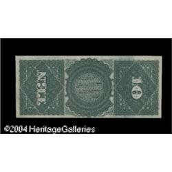 Fr. 96 $10 1869 Legal Tender Very Choice New. The b <B>Fr. 96 $10 1869 Legal Tender Very Choice New.</B></I> The back design is centered just a tad low, but this Rainbow Ten has a remarkably bold blue security stain and very nice overall color. It also has deep, original embossing, something that is not seen all that often on this one-number type. <BR><BR><B>Important notice:</B> Heritage usually auctions material at the rate of 200-250 lots per hour. On some occasions eBay Live bid software or the Internet may not be able to keep up with the pace of the auction. We recommend placing a realistic absentee bid now as insurance to avoid disappointment. Occasionally the auctioneer may eliminate or reject an eBay Live bid, and the auctioneer may also reopen a lot after the close of the eBay live bidding (usually because we missed an audience bid), and may reject your bid even if it shows you as the winning bidder. By bidding via eBay Live, you agree that Heritage may award the lot to another bidder at its sole discretion under the circumstances described above or any other reasonable circumstances. Since eBay bids are not shown to us until we open the lot on the floor, we treat those bids just like floor bids. In most cases the floor responds before the eBay bid is presented to us, due to Internet lag time, so for consistency we have made it a policy that floor bids are always considered first over tie eBay live bids. Also please note that all Heritage lots purchased through eBay Live carry a 20% Buyer's Premium. Please make sure you read the Terms and Conditions before you bid. This lot is being auctioned in conjunction with a live floor auction by Heritage Galleries & Auctioneers. All final auction and invoice information will be supplied by Heritage Galleries & Auctioneers, and all other information should be considered preliminary. Lot:16946