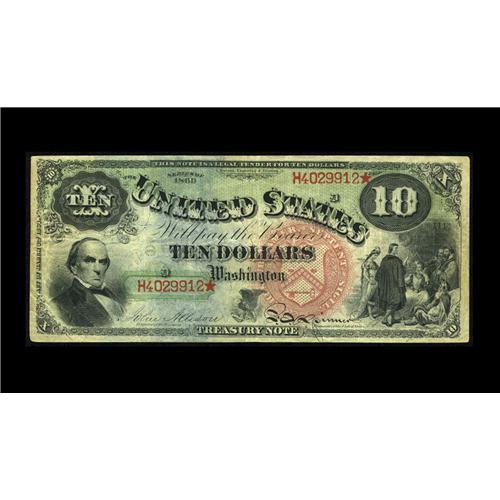 <B>Fr. 96 $10 1869 Legal Tender Very Fine.</B></I> A well-margined, perfectly natural example of this popular Rainbow Ten. The paper color has mellowed very slightly, but the ink colors, which provide this note its nickname, are all beautifully bright. In spite of a fair amount of circulation, the original embossing on this handsome piece remains boldly visible.