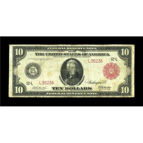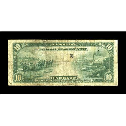 <B>Fr. 903a $10 1914 Red Seal Federal Reserve Note Fine.</B></I> This is a new addition to the census for this rare Friedberg number. It also becomes the new low serial number and the first four-digit serial number note for this Friedberg number. There are around 15 notes documented with one note residing in the collection of the Smithsonian. Also, the last auction offering was almost four years ago. This example has a brighter face than back and the edges are nice for the grade. The red overprint is darker than what is usually seen at this grade level, too.<BR><BR><b>Shipping:</b> Coins & Currency (<a target="_blank" href="http://www.heritageauctions.com/common/shipping.php">view shipping information</a>)
