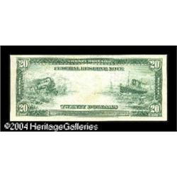 Fr. 967 $20 1914 Federal Reserve Note Choice New. S <B>Fr. 967 $20 1914 Federal Reserve Note Choice New.</B></I> Surprisingly, this number is represented by only about two dozen pieces. This strictly original, problem free, well margined note is one of the better ones. It comes quite close to the full Gem grade. <BR><BR><B>Important notice:</B> Heritage usually auctions material at the rate of 200-250 lots per hour. On some occasions eBay Live bid software or the Internet may not be able to keep up with the pace of the auction. We recommend placing a realistic absentee bid now as insurance to avoid disappointment. Occasionally the auctioneer may eliminate or reject an eBay Live bid, and the auctioneer may also reopen a lot after the close of the eBay live bidding (usually because we missed an audience bid), and may reject your bid even if it shows you as the winning bidder. By bidding via eBay Live, you agree that Heritage may award the lot to another bidder at its sole discretion under the circumstances described above or any other reasonable circumstances. Since eBay bids are not shown to us until we open the lot on the floor, we treat those bids just like floor bids. In most cases the floor responds before the eBay bid is presented to us, due to Internet lag time, so for consistency we have made it a policy that floor bids are always considered first over tie eBay live bids. Also please note that all Heritage lots purchased through eBay Live carry a 20% Buyer's Premium. Please make sure you read the Terms and Conditions before you bid. This lot is being auctioned in conjunction with a live floor auction by Heritage Galleries & Auctioneers. All final auction and invoice information will be supplied by Heritage Galleries & Auctioneers, and all other information should be considered preliminary. Lot:17733