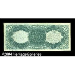 Fr. 97 $10 1875 Legal Tender Choice About New. Fr. 97 i <B>Fr. 97 $10 1875 Legal Tender Extremely Fine.</B></I> Fr. 97 is a classically rare note. CAA has handled only two examples in our previous 38 sales, an Extra Fine back in 1992 and a Choice About New in September 2003. This note is one of only about a dozen examples known to exist, and it is easily within the top half in the census. No uncirculated example is known. One of the EF's was sold in a March 2001 auction by Lyn Knight for $28,600. This note might very well challenge that level, as it is a pretty, brightly colored example with good color and eye appeal. An outstanding rarity that no doubt, if it were a U.S. coin, would sell for many times that amount. <BR><BR><B>Important notice:</B> Heritage usually auctions material at the rate of 200-250 lots per hour. On some occasions eBay Live bid software or the Internet may not be able to keep up with the pace of the auction. We recommend placing a realistic absentee bid now as insurance to avoid disappointment. Occasionally the auctioneer may eliminate or reject an eBay Live bid, and the auctioneer may also reopen a lot after the close of the eBay live bidding (usually because we missed an audience bid), and may reject your bid even if it shows you as the winning bidder. By bidding via eBay Live, you agree that Heritage may award the lot to another bidder at its sole discretion under the circumstances described above or any other reasonable circumstances. Since eBay bids are not shown to us until we open the lot on the floor, we treat those bids just like floor bids. In most cases the floor responds before the eBay bid is presented to us, due to Internet lag time, so for consistency we have made it a policy that floor bids are always considered first over tie eBay live bids. Also please note that all Heritage lots purchased through eBay Live carry a 20% Buyer's Premium. Please make sure you read the Terms and Conditions before you bid. This lot is being auctioned in conjunction with a live floor auction by Heritage Galleries & Auctioneers. All final auction and invoice information will be supplied by Heritage Galleries & Auctioneers, and all other information should be considered preliminary. Lot:16949