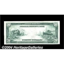 Fr. 970 $20 1914 Federal Reserve Note Choice New. A moderately scarce number, with a few more than 30 examples known, but bright, attractive and very high grade. <BR><BR><B>Important notice:</B> Heritage usually auctions material at the rate of 200-250 lots per hour. On some occasions eBay Live bid software or the Internet may not be able to keep up with the pace of the auction. We recommend placing a realistic absentee bid now as insurance to avoid disappointment. Occasionally the auctioneer may eliminate or reject an eBay Live bid, and the auctioneer may also reopen a lot after the close of the eBay live bidding (usually because we missed an audience bid), and may reject your bid even if it shows you as the winning bidder. By bidding via eBay Live, you agree that Heritage may award the lot to another bidder at its sole discretion under the circumstances described above or any other reasonable circumstances. Since eBay bids are not shown to us until we open the lot on the floor, we treat those bids just like floor bids. In most cases the floor responds before the eBay bid is presented to us, due to Internet lag time, so for consistency we have made it a policy that floor bids are always considered first over tie eBay live bids. Also please note that all Heritage lots purchased through eBay Live carry a 20% Buyer's Premium. Please make sure you read the Terms and Conditions before you bid. <BR><BR><B>IMPORTANT ANNOUNCEMENT ABOUT RESERVES:</B> Heritage now divulges all reserves on its web site 7 days before every auction. If you want to know whether the reserve on this lot has been met, and if not, what the reserve amount is, please visit this lot page on the HeritageCoin.com web site, or email: bid@HeritageGalleries.com