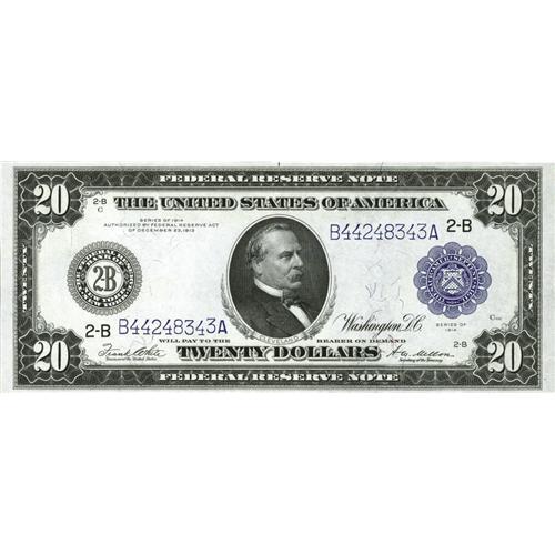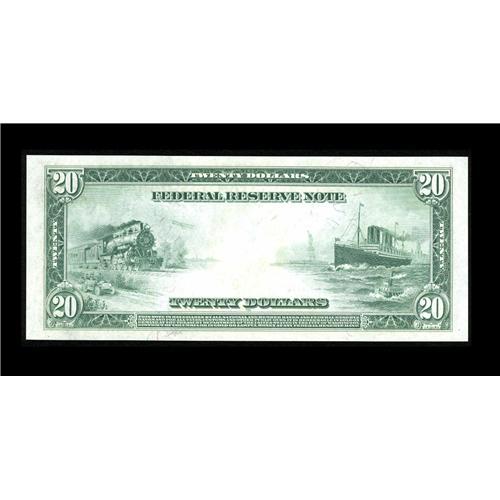 <B>Fr. 971a $20 1914 Federal Reserve Note Superb Gem New.</B></I> Nicely centered is this well preserved embossed New York $20.<BR><I>From The Plymouth Rock Collection</B></I>