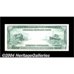 Fr. 974 $20 1914 Federal Reserve Note Choice New. A nice example of a Burke-Houston Philadelphia Twenty. About three dozen pieces are known. <BR><BR><B>Important notice:</B> Heritage usually auctions material at the rate of 200-250 lots per hour. On some occasions eBay Live bid software or the Internet may not be able to keep up with the pace of the auction. We recommend placing a realistic absentee bid now as insurance to avoid disappointment. Occasionally the auctioneer may eliminate or reject an eBay Live bid, and the auctioneer may also reopen a lot after the close of the eBay live bidding (usually because we missed an audience bid), and may reject your bid even if it shows you as the winning bidder. By bidding via eBay Live, you agree that Heritage may award the lot to another bidder at its sole discretion under the circumstances described above or any other reasonable circumstances. Since eBay bids are not shown to us until we open the lot on the floor, we treat those bids just like floor bids. In most cases the floor responds before the eBay bid is presented to us, due to Internet lag time, so for consistency we have made it a policy that floor bids are always considered first over tie eBay live bids. Also please note that all Heritage lots purchased through eBay Live carry a 20% Buyer's Premium. Please make sure you read the Terms and Conditions before you bid. <BR><BR><B>IMPORTANT ANNOUNCEMENT ABOUT RESERVES:</B> Heritage now divulges all reserves on its web site 7 days before every auction. If you want to know whether the reserve on this lot has been met, and if not, what the reserve amount is, please visit this lot page on the HeritageCoin.com web site, or email: bid@HeritageGalleries.com