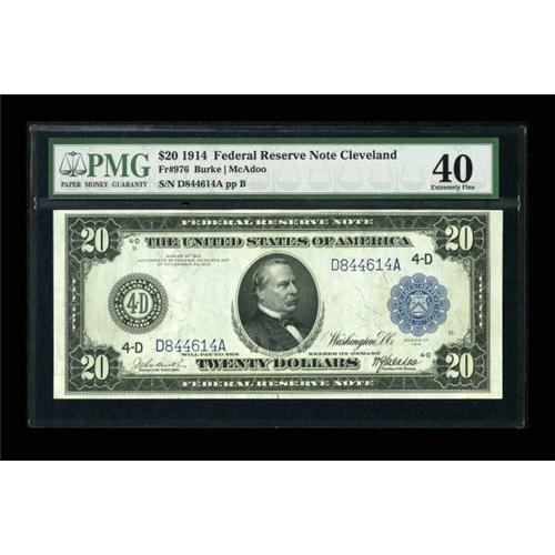 <B>Fr. 976 $20 1914 Federal Reserve Note PMG Extremely Fine 40.</B></I> This Cleveland note has all the eye appeal of an AU or better.<BR><BR><b>Shipping:</b> Coins & Currency (<a target="_blank" href="http://www.heritageauctions.com/common/shipping.php">view shipping information</a>)