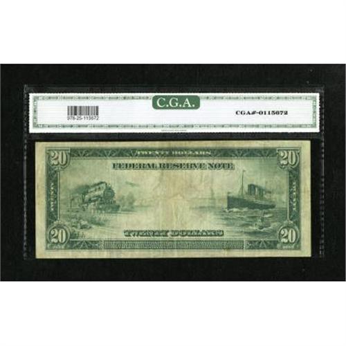 <B>Fr. 978 $20 1914 Federal Reserve Note CGA Very Fine 25.</B></I> An attractive mid-grade representative of this issue. The paper is solid.<BR><BR><b>Shipping:</b> Coins & Currency (<a target="_blank" href="http://www.heritageauctions.com/common/shipping.php">view shipping information</a>)