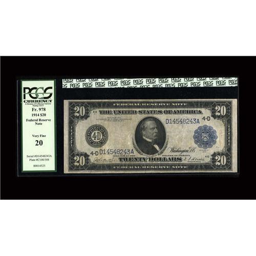 <B>Fr. 978 $20 1914 Federal Reserve Note PCGS Very Fine 20.</B></I> This evenly circulated issue is solid save for a bit of furling on the bottom margin.
