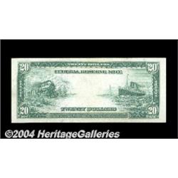 Fr. 978 $20 1914 Federal Reserve Note Very Choice New. Broadly margined and attractive, as well as quite rare. This is only the seventh example we've sold, and one of about two dozen pieces known in all grades combined. <BR><BR><B>Important notice:</B> Heritage usually auctions material at the rate of 200-250 lots per hour. On some occasions eBay Live bid software or the Internet may not be able to keep up with the pace of the auction. We recommend placing a realistic absentee bid now as insurance to avoid disappointment. Occasionally the auctioneer may eliminate or reject an eBay Live bid, and the auctioneer may also reopen a lot after the close of the eBay live bidding (usually because we missed an audience bid), and may reject your bid even if it shows you as the winning bidder. By bidding via eBay Live, you agree that Heritage may award the lot to another bidder at its sole discretion under the circumstances described above or any other reasonable circumstances. Since eBay bids are not shown to us until we open the lot on the floor, we treat those bids just like floor bids. In most cases the floor responds before the eBay bid is presented to us, due to Internet lag time, so for consistency we have made it a policy that floor bids are always considered first over tie eBay live bids. Also please note that all Heritage lots purchased through eBay Live carry a 20% Buyer's Premium. Please make sure you read the Terms and Conditions before you bid. <BR><BR><B>IMPORTANT ANNOUNCEMENT ABOUT RESERVES:</B> Heritage now divulges all reserves on its web site 7 days before every auction. If you want to know whether the reserve on this lot has been met, and if not, what the reserve amount is, please visit this lot page on the HeritageCoin.com web site, or email: bid@HeritageGalleries.com
