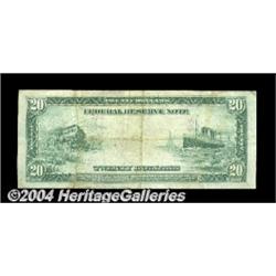 Fr. 978 $20 1914 Federal Reserve Note Very Fine. This is only the eighth example that CAA has handled of this scarce Cleveland District Fed. The total census is just under 20. It's very well margined, strictly natural and clean from the face, although there is a touch of soil on the back along the folds. <BR><BR><B>Important notice:</B> Heritage usually auctions material at the rate of 200-250 lots per hour. On some occasions eBay Live bid software or the Internet may not be able to keep up with the pace of the auction. We recommend placing a realistic absentee bid now as insurance to avoid disappointment. Occasionally the auctioneer may eliminate or reject an eBay Live bid, and the auctioneer may also reopen a lot after the close of the eBay live bidding (usually because we missed an audience bid), and may reject your bid even if it shows you as the winning bidder. By bidding via eBay Live, you agree that Heritage may award the lot to another bidder at its sole discretion under the circumstances described above or any other reasonable circumstances. Since eBay bids are not shown to us until we open the lot on the floor, we treat those bids just like floor bids. In most cases the floor responds before the eBay bid is presented to us, due to Internet lag time, so for consistency we have made it a policy that floor bids are always considered first over tie eBay live bids. Also please note that all Heritage lots purchased through eBay Live carry a 20% Buyer's Premium. Please make sure you read the Terms and Conditions before you bid. <BR><BR><B>IMPORTANT ANNOUNCEMENT ABOUT RESERVES:</B> Heritage now divulges all reserves on its web site 7 days before every auction. If you want to know whether the reserve on this lot has been met, and if not, what the reserve amount is, please visit this lot page on the HeritageCoin.com web site, or email: bid@HeritageGalleries.com