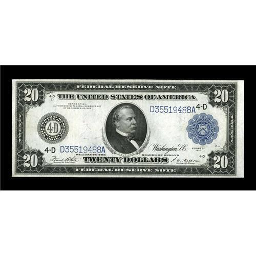 <B>Fr. 979a $20 1914 Federal Reserve Note Extremely Fine.</B></I> This $20 looks to be of a higher grade at first glance. However, light handling can be observed with diligence.<BR><BR><b>Shipping:</b> Coins & Currency (<a target="_blank" href="http://www.heritageauctions.com/common/shipping.php">view shipping information</a>)