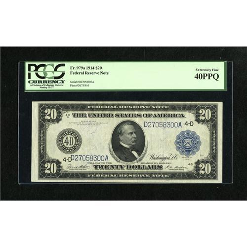 Fr. 979a $20 1914 Federal Reserve Note PCGS Extr