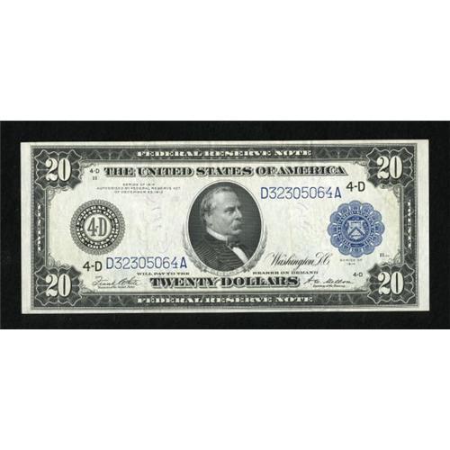 <B>Fr. 979a $20 1914 Federal Reserve Note Very Fine+.</B></I> A pleasing, bright, and well margined example from Cleveland.<BR><BR><b>Shipping:</b> Coins & Currency (<a target="_blank" href="http://www.heritageauctions.com/common/shipping.php">view shipping information</a>)