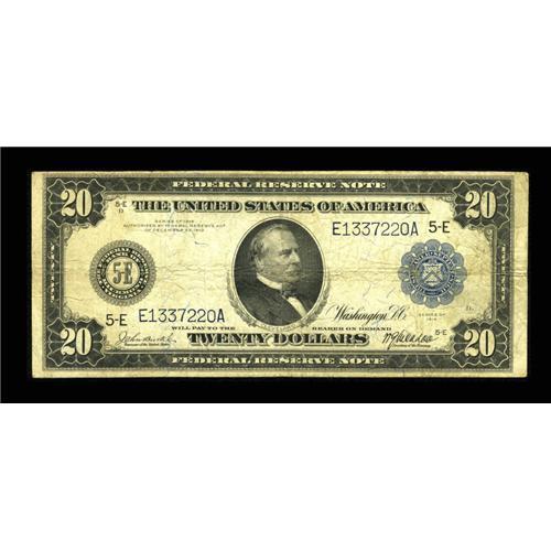 <B>Fr. 980 $20 1914 Federal Reserve Note Fine.</B></I> A scarce note, with only eleven pieces reported in Fine or better grade.<BR><BR><b>Shipping:</b> Coins & Currency (<a target="_blank" href="http://www.heritageauctions.com/common/shipping.php">view shipping information</a>)