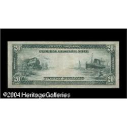 Fr. 980 $20 1914 Federal Reserve Note Very Fine. This i <B>Fr. 980 $20 1914 Federal Reserve Note Very Fine.</B></I> This is only the third Fr. 980 that we've sold in all of our 39 sales, and one of only around ten known to us for all grades combined. It's a nice, lightly circulated, well margined, problem-free example, and a number that few collectors have had the opportunity of purchasing in the last decade. <BR><BR><B>Important notice:</B> Heritage usually auctions material at the rate of 200-250 lots per hour. On some occasions eBay Live bid software or the Internet may not be able to keep up with the pace of the auction. We recommend placing a realistic absentee bid now as insurance to avoid disappointment. Occasionally the auctioneer may eliminate or reject an eBay Live bid, and the auctioneer may also reopen a lot after the close of the eBay live bidding (usually because we missed an audience bid), and may reject your bid even if it shows you as the winning bidder. By bidding via eBay Live, you agree that Heritage may award the lot to another bidder at its sole discretion under the circumstances described above or any other reasonable circumstances. Since eBay bids are not shown to us until we open the lot on the floor, we treat those bids just like floor bids. In most cases the floor responds before the eBay bid is presented to us, due to Internet lag time, so for consistency we have made it a policy that floor bids are always considered first over tie eBay live bids. Also please note that all Heritage lots purchased through eBay Live carry a 20% Buyer's Premium. Please make sure you read the Terms and Conditions before you bid. This lot is being auctioned in conjunction with a live floor auction by Heritage Galleries & Auctioneers. All final auction and invoice information will be supplied by Heritage Galleries & Auctioneers, and all other information should be considered preliminary. Lot:17740