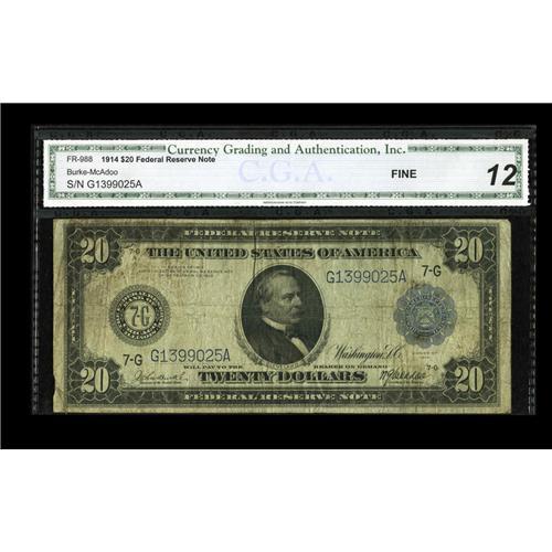 Fr. 988 $20 1914 Federal Reserve Note CGA Fine 12. Mode Fr. 988 $20 1914 Federal Reserve Note CGA Fi