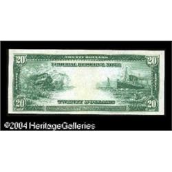 Fr. 988 $20 1914 Federal Reserve Note Very Choice New <B>Fr. 988 $20 1914 Federal Reserve Note Very Choice New.</B></I> A well margined example with excellent color. <BR><BR><B>Important notice:</B> Heritage usually auctions material at the rate of 200-250 lots per hour. On some occasions eBay Live bid software or the Internet may not be able to keep up with the pace of the auction. We recommend placing a realistic absentee bid now as insurance to avoid disappointment. Occasionally the auctioneer may eliminate or reject an eBay Live bid, and the auctioneer may also reopen a lot after the close of the eBay live bidding (usually because we missed an audience bid), and may reject your bid even if it shows you as the winning bidder. By bidding via eBay Live, you agree that Heritage may award the lot to another bidder at its sole discretion under the circumstances described above or any other reasonable circumstances. Since eBay bids are not shown to us until we open the lot on the floor, we treat those bids just like floor bids. In most cases the floor responds before the eBay bid is presented to us, due to Internet lag time, so for consistency we have made it a policy that floor bids are always considered first over tie eBay live bids. Also please note that all Heritage lots purchased through eBay Live carry a 20% Buyer's Premium. Please make sure you read the Terms and Conditions before you bid. This lot is being auctioned in conjunction with a live floor auction by Heritage Galleries & Auctioneers. All final auction and invoice information will be supplied by Heritage Galleries & Auctioneers, and all other information should be considered preliminary. Lot:17743