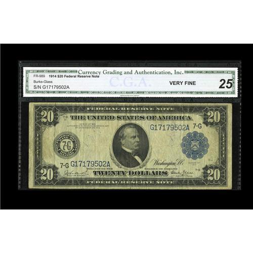 Fr. 989 $20 1914 Federal Reserve Note CGA Very Fine 25. Fr. 989 $20 1914 Federal Reserve Note CGA Ve