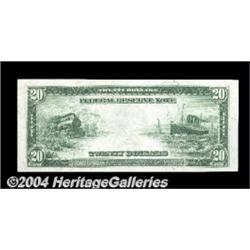 Fr. 991a $20 1914 Federal Reserve Note Gem New. Deep, original embossing, broad margins and beautiful color are all to be found on this handsome $20 Fed. The note has been off the market for nearly a quarter century, having last sold in the Bowers and Ruddy 981 ANA sale. <BR><BR><B>Important notice:</B> Heritage usually auctions material at the rate of 200-250 lots per hour. On some occasions eBay Live bid software or the Internet may not be able to keep up with the pace of the auction. We recommend placing a realistic absentee bid now as insurance to avoid disappointment. Occasionally the auctioneer may eliminate or reject an eBay Live bid, and the auctioneer may also reopen a lot after the close of the eBay live bidding (usually because we missed an audience bid), and may reject your bid even if it shows you as the winning bidder. By bidding via eBay Live, you agree that Heritage may award the lot to another bidder at its sole discretion under the circumstances described above or any other reasonable circumstances. Since eBay bids are not shown to us until we open the lot on the floor, we treat those bids just like floor bids. In most cases the floor responds before the eBay bid is presented to us, due to Internet lag time, so for consistency we have made it a policy that floor bids are always considered first over tie eBay live bids. Also please note that all Heritage lots purchased through eBay Live carry a 20% Buyer's Premium. Please make sure you read the Terms and Conditions before you bid. <BR><BR><B>IMPORTANT ANNOUNCEMENT ABOUT RESERVES:</B> Heritage now divulges all reserves on its web site 7 days before every auction. If you want to know whether the reserve on this lot has been met, and if not, what the reserve amount is, please visit this lot page on the HeritageCoin.com web site, or email: bid@HeritageGalleries.com