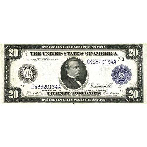 <B>Fr. 991b $20 1914 Federal Reserve Note Choice About New.</B></I> This is a pleasing lightly circulated example that has some original embossing remianing. Plenty of eye appeal due to the bright surfaces on this "b" variety.