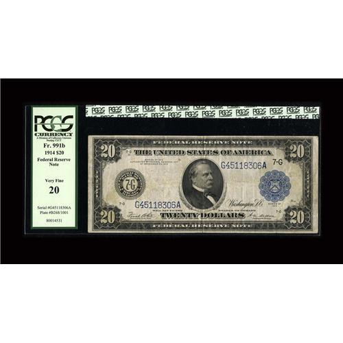 <B>Fr. 991b $20 1914 Federal Reserve Note PCGS Very Fine 25.</B></I> The back has some soiling mostly concentrated in the center.