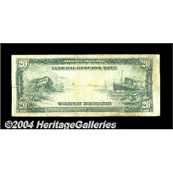 Fr. 992 $20 1914 Federal Reserve Note Fine. The eighth example that CAA has handled, and a perfect piece for the grade. Broadly margined and totally problem free. <BR><BR><B>Important notice:</B> Heritage usually auctions material at the rate of 200-250 lots per hour. On some occasions eBay Live bid software or the Internet may not be able to keep up with the pace of the auction. We recommend placing a realistic absentee bid now as insurance to avoid disappointment. Occasionally the auctioneer may eliminate or reject an eBay Live bid, and the auctioneer may also reopen a lot after the close of the eBay live bidding (usually because we missed an audience bid), and may reject your bid even if it shows you as the winning bidder. By bidding via eBay Live, you agree that Heritage may award the lot to another bidder at its sole discretion under the circumstances described above or any other reasonable circumstances. Since eBay bids are not shown to us until we open the lot on the floor, we treat those bids just like floor bids. In most cases the floor responds before the eBay bid is presented to us, due to Internet lag time, so for consistency we have made it a policy that floor bids are always considered first over tie eBay live bids. Also please note that all Heritage lots purchased through eBay Live carry a 20% Buyer's Premium. Please make sure you read the Terms and Conditions before you bid. <BR><BR><B>IMPORTANT ANNOUNCEMENT ABOUT RESERVES:</B> Heritage now divulges all reserves on its web site 7 days before every auction. If you want to know whether the reserve on this lot has been met, and if not, what the reserve amount is, please visit this lot page on the HeritageCoin.com web site, or email: bid@HeritageGalleries.com