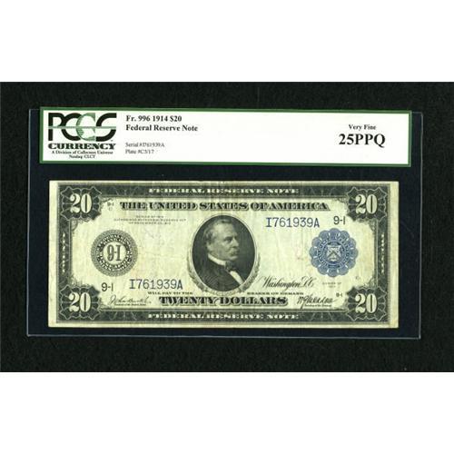 Fr. 996 $20 1914 Federal Reserve Note PCGS Very
