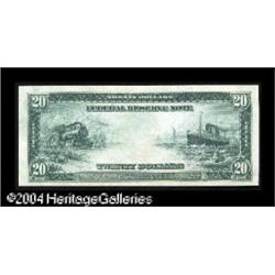 Fr. 998 $20 1914 Federal Reserve Note Choice New.Roughl <B>Fr. 998 $20 1914 Federal Reserve Note Choice New.</B></I> Roughly 50 examples are documented of this number in the Gengerke census. This one is especially nice, with Gem paper surfaces and originality and would be classified as just that but for the bottom margin. <BR><BR><B>Important notice:</B> Heritage usually auctions material at the rate of 200-250 lots per hour. On some occasions eBay Live bid software or the Internet may not be able to keep up with the pace of the auction. We recommend placing a realistic absentee bid now as insurance to avoid disappointment. Occasionally the auctioneer may eliminate or reject an eBay Live bid, and the auctioneer may also reopen a lot after the close of the eBay live bidding (usually because we missed an audience bid), and may reject your bid even if it shows you as the winning bidder. By bidding via eBay Live, you agree that Heritage may award the lot to another bidder at its sole discretion under the circumstances described above or any other reasonable circumstances. Since eBay bids are not shown to us until we open the lot on the floor, we treat those bids just like floor bids. In most cases the floor responds before the eBay bid is presented to us, due to Internet lag time, so for consistency we have made it a policy that floor bids are always considered first over tie eBay live bids. Also please note that all Heritage lots purchased through eBay Live carry a 20% Buyer's Premium. Please make sure you read the Terms and Conditions before you bid. This lot is being auctioned in conjunction with a live floor auction by Heritage Galleries & Auctioneers. All final auction and invoice information will be supplied by Heritage Galleries & Auctioneers, and all other information should be considered preliminary. Lot:17746